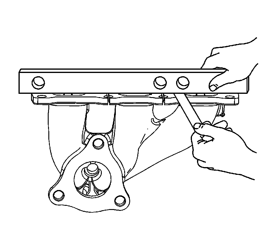 4. Measure the alignment or surface flatness of the exhaust manifold flanges, using a straight edge and a feeler gauge. Exhaust manifold surface flatness must not exceed 0.254 mm (0.010 in).