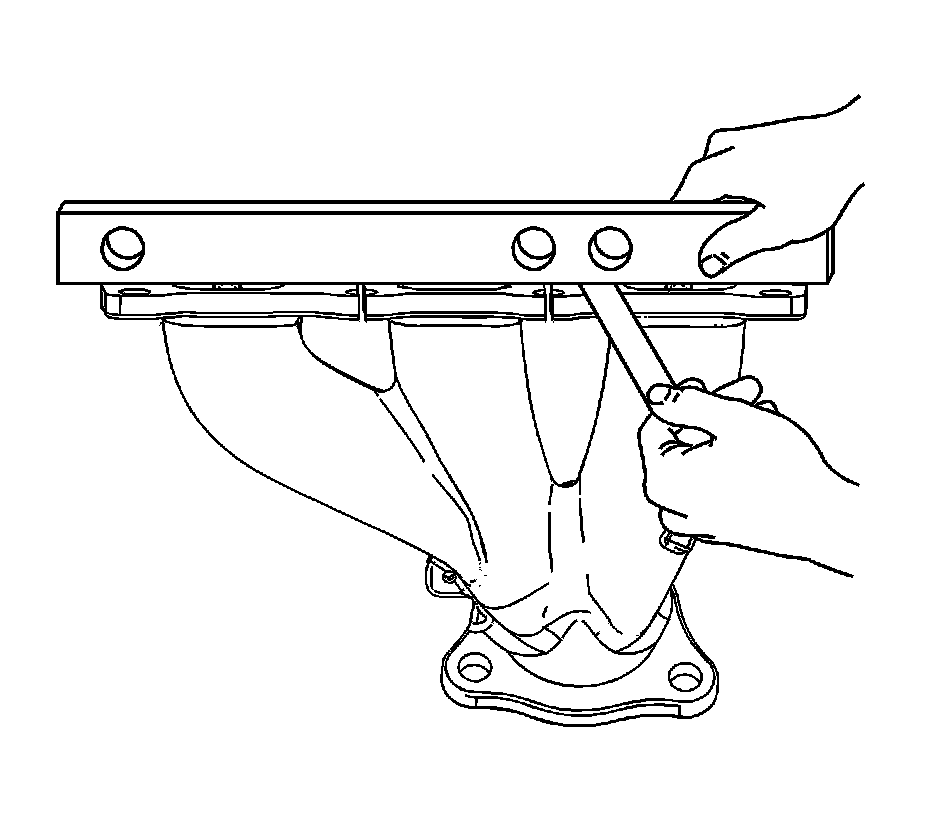 4. Measure the alignment or surface flatness of the exhaust manifold flanges, using a straight edge and a feeler gauge. Exhaust manifold surface flatness must not exceed 0.254 mm (0.010 in).
