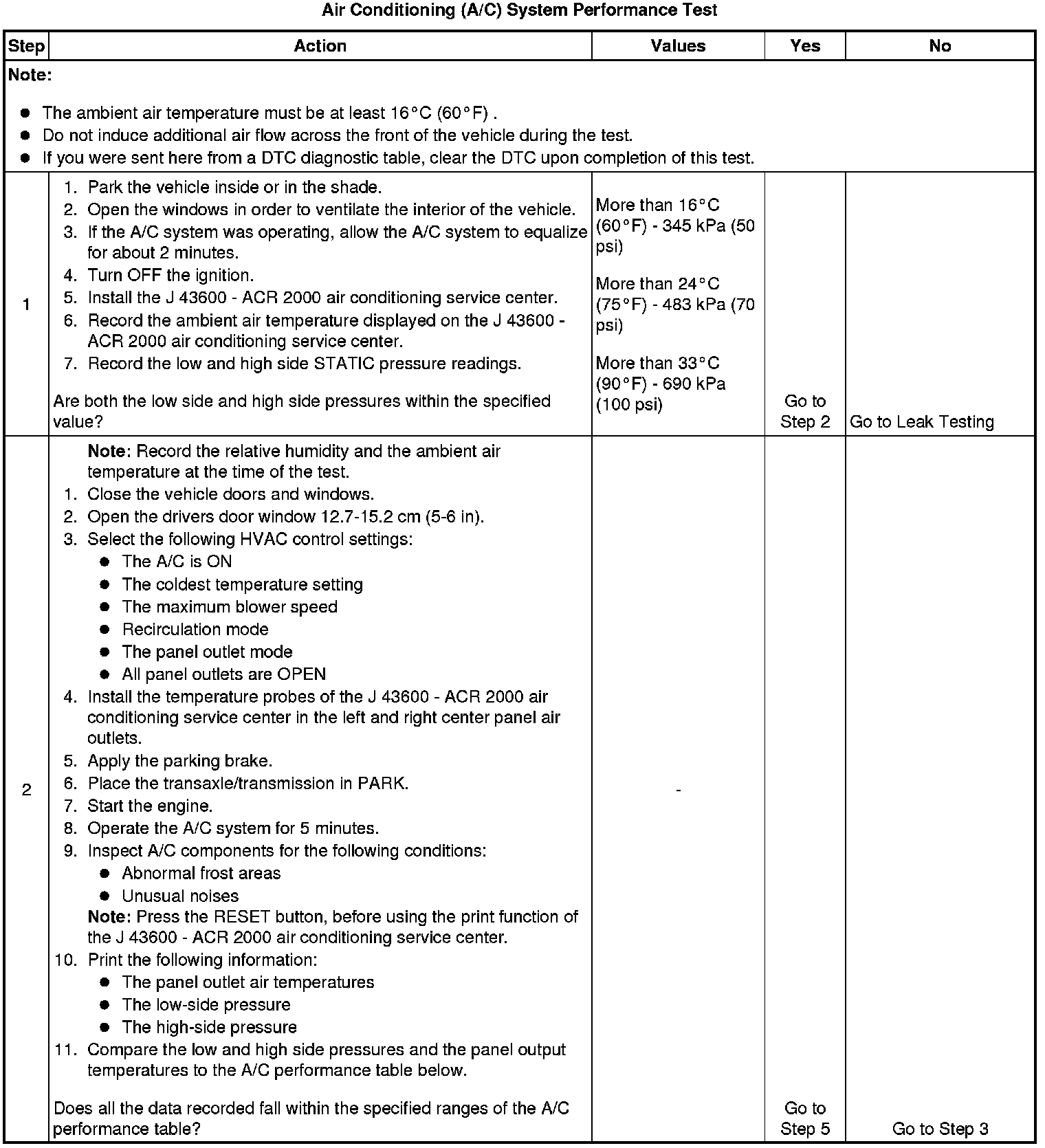 2. This step measures the performance of the A/C system.