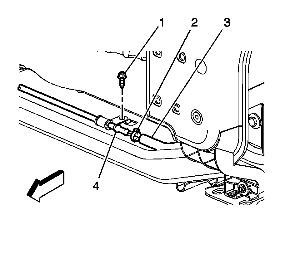 4. Remove the power steering gear outlet hose bracket bolt (1).