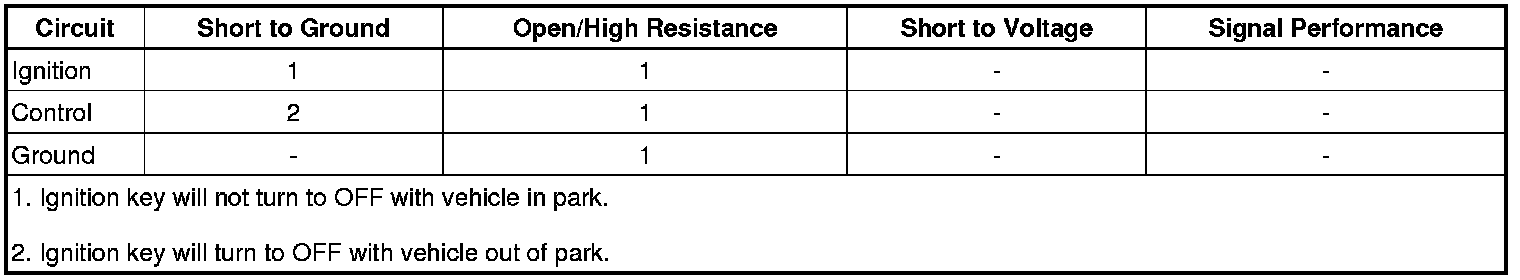 * Lost power to the ignition switch or a faulty ignition switch can prevent the ignition key from turning to the lock position and prevent ignition key removal from the column.