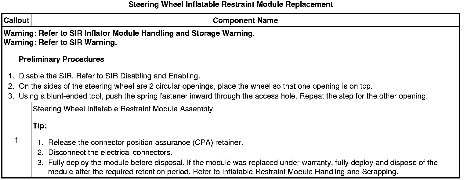 Steering Wheel Inflatable Restraint Module Replacement