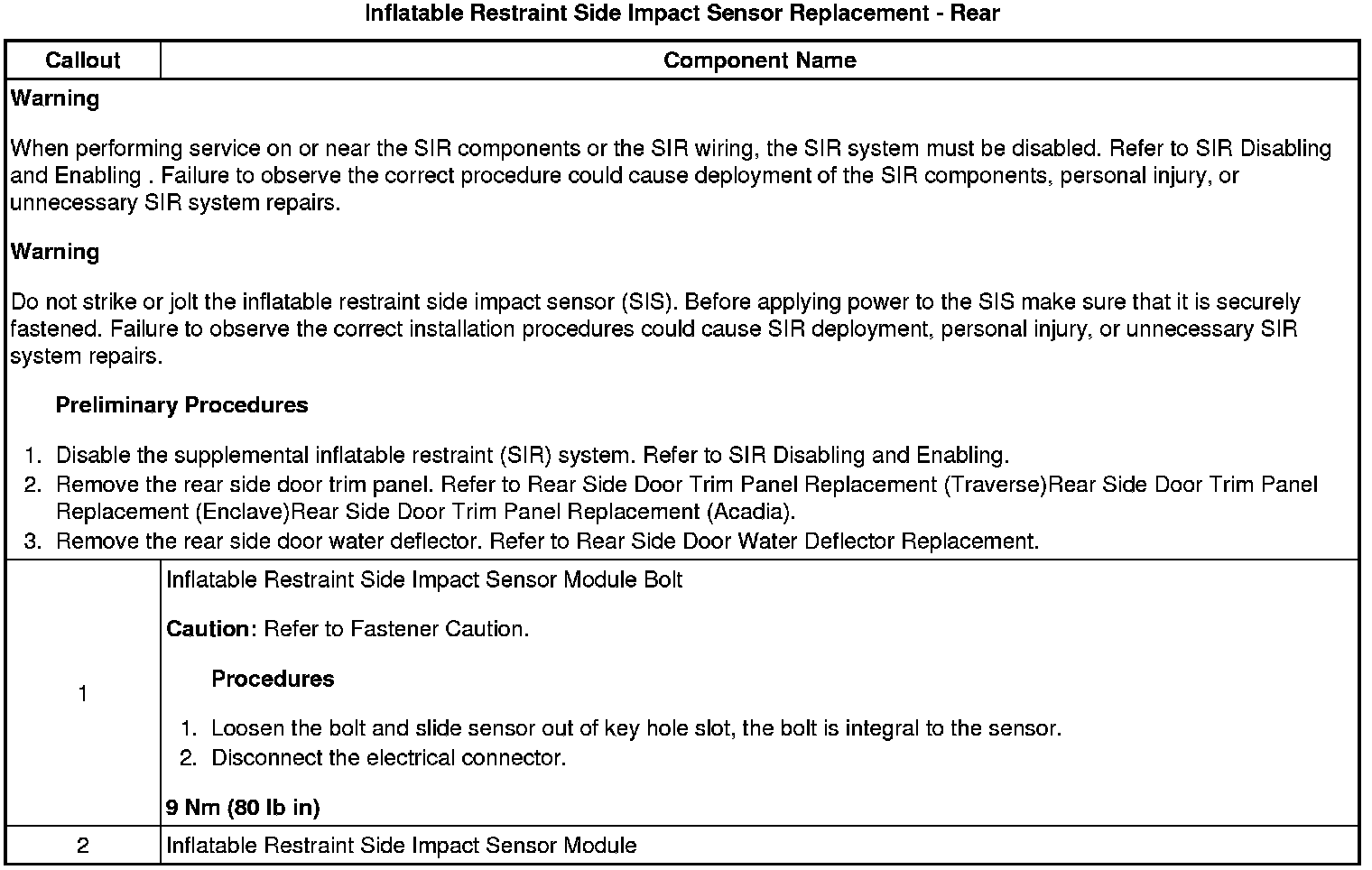 Inflatable Restraint Side Impact Sensor Replacement - Rear