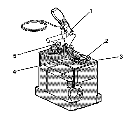 2. To mount, use the proper size bolt (2) and nut (5) with washers in order to secure the pretensioner (1) to the deployment fixture brackets (4).