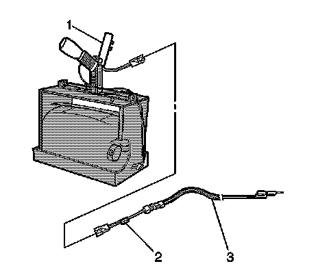 15. Connect the pretensioner (1) to the adapter (2) on the deployment harness (3).