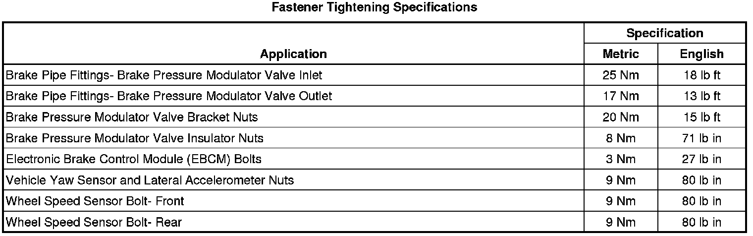 Fastener Tightening Specifications