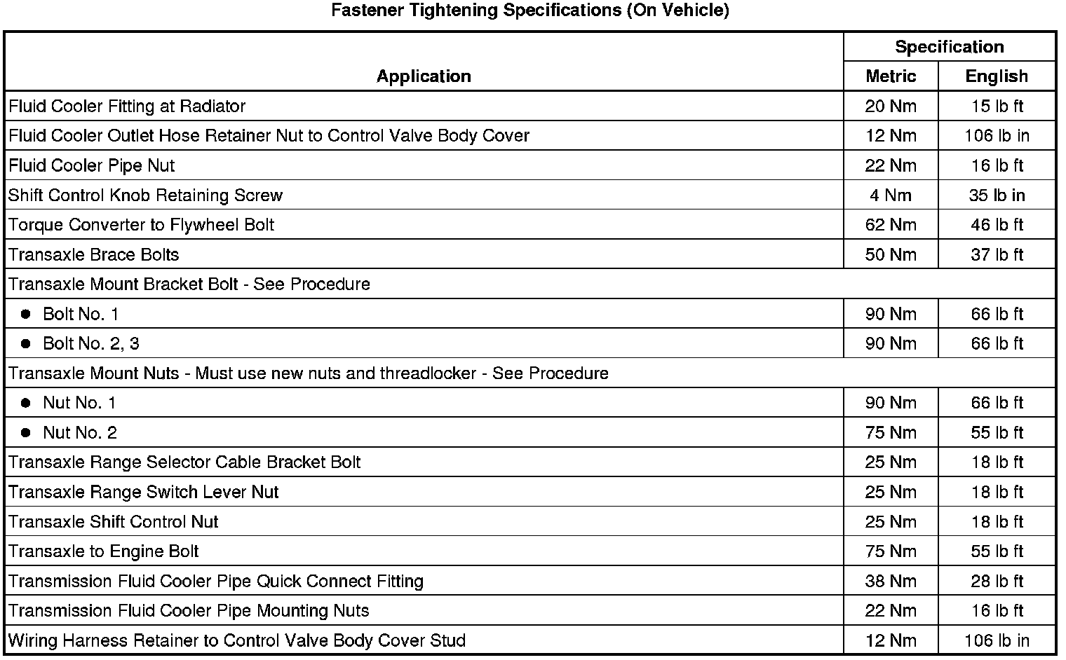 Fastener Tightening Specifications (On Vehicle)