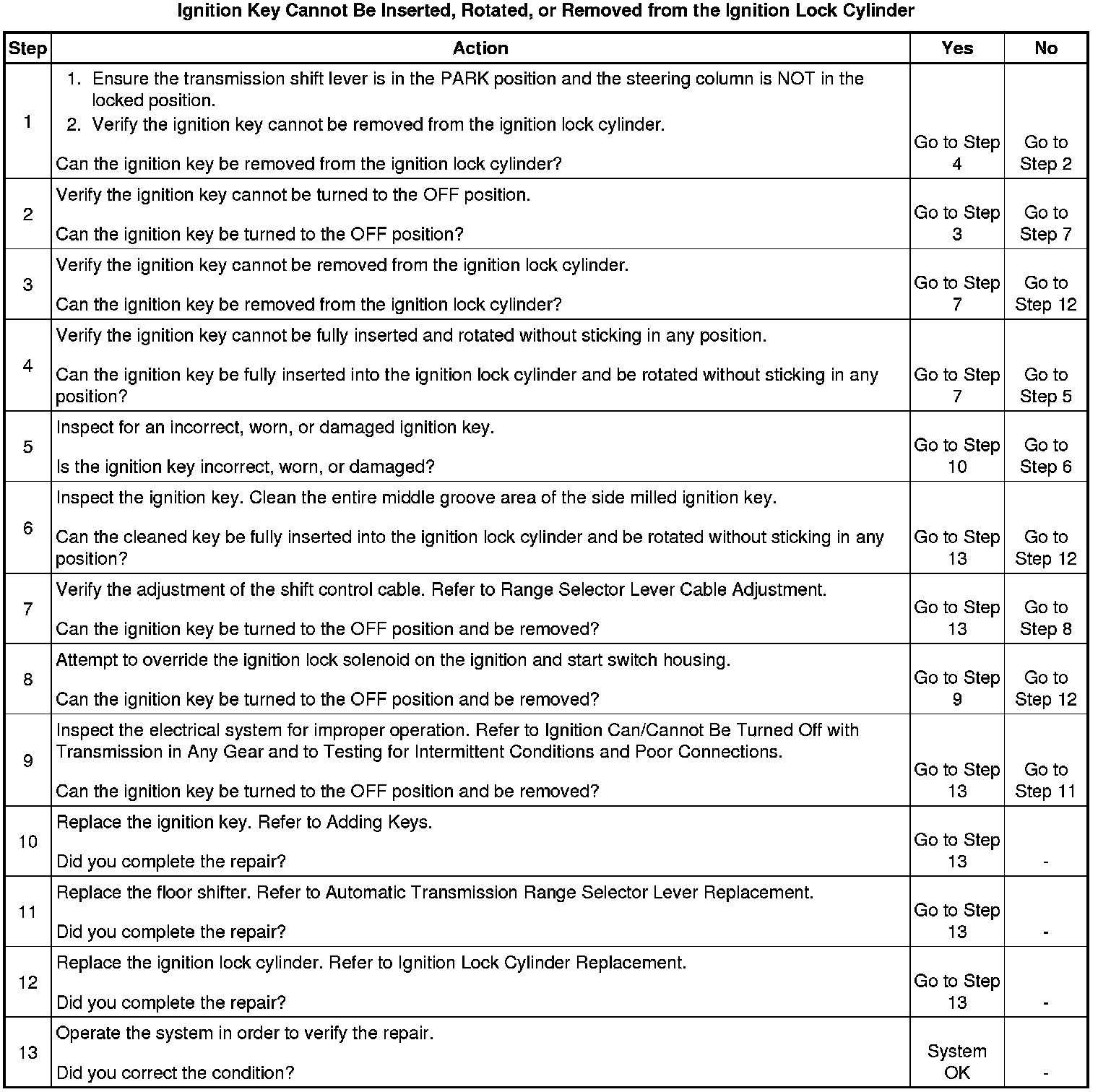 Cannot Be Inserted, Rotated, or Removed from the Ignition Lock Cylinder