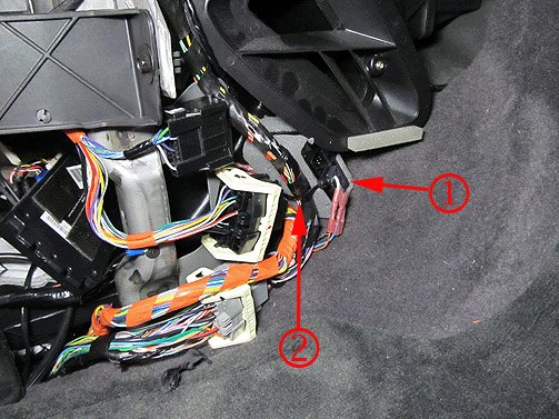 9. Reconnect the connector halves and reattach to the center console brace.