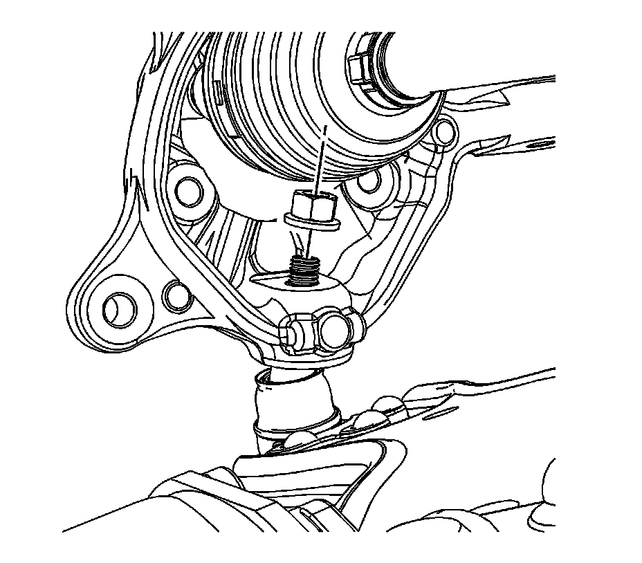 3. Disconnect the outer tie rod end from the steering knuckle. Refer to Steering Linkage Outer Tie Rod Replacement Steering Linkage Outer Tie Rod Replacement.