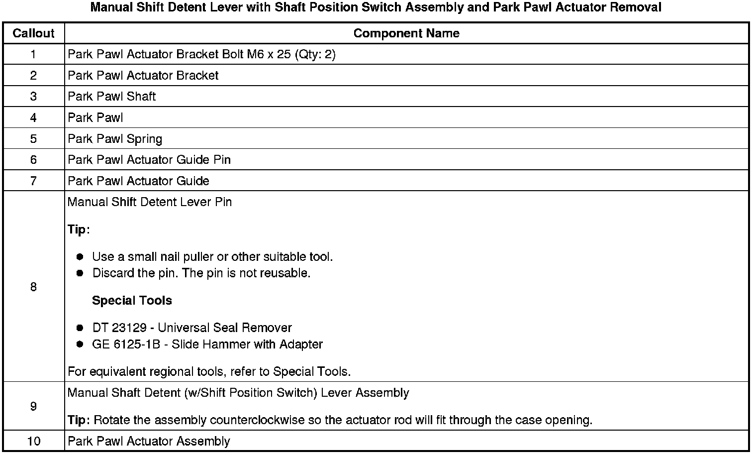 11. Manual Shift Detent Lever with Shaft Position Switch Assembly and Park Pawl Actuator Removal