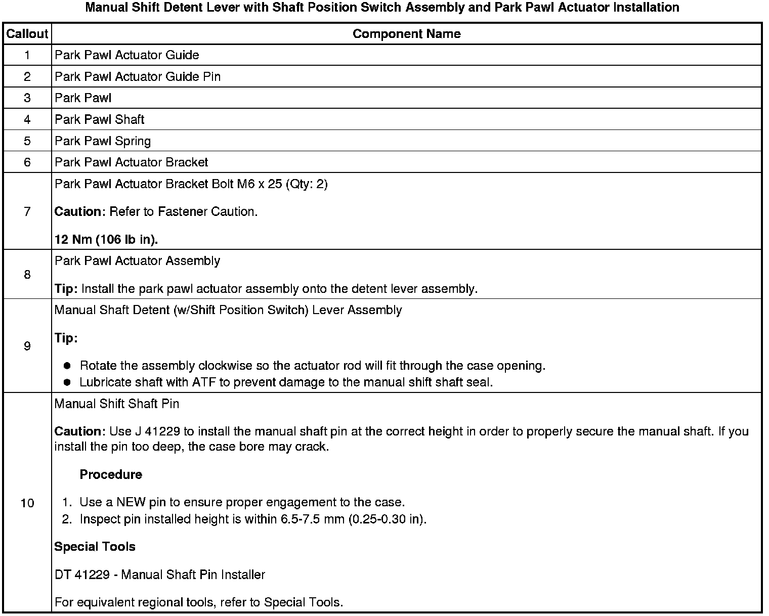 17. Manual Shift Detent Lever with Shaft Position Switch Assembly and Park Pawl Actuator Installation