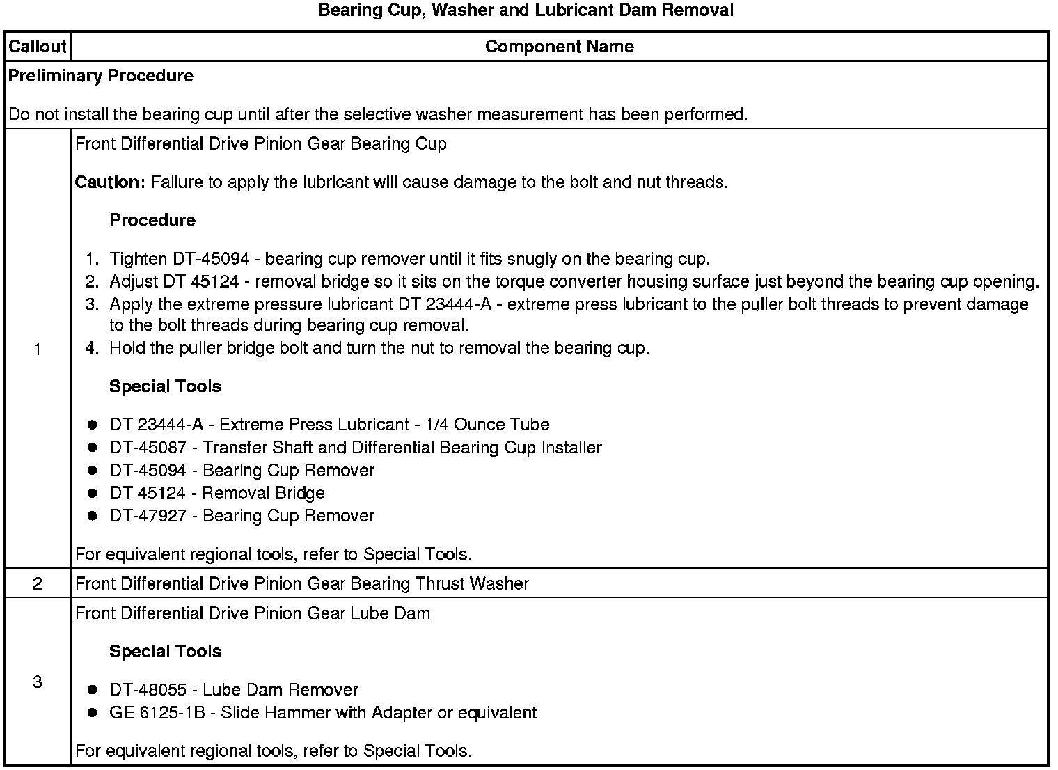 Bearing Cup, Washer and Lubricant Dam Removal