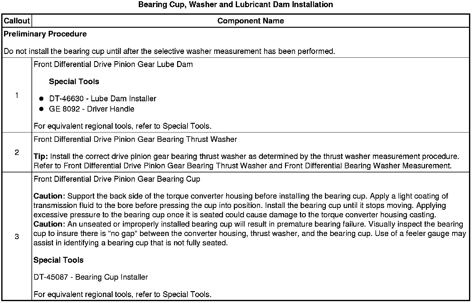 21. Front Differential Drive Pinion Bearing Cup, Washer, and Lubricant Dam Replacement - Torque Converter Housing Side