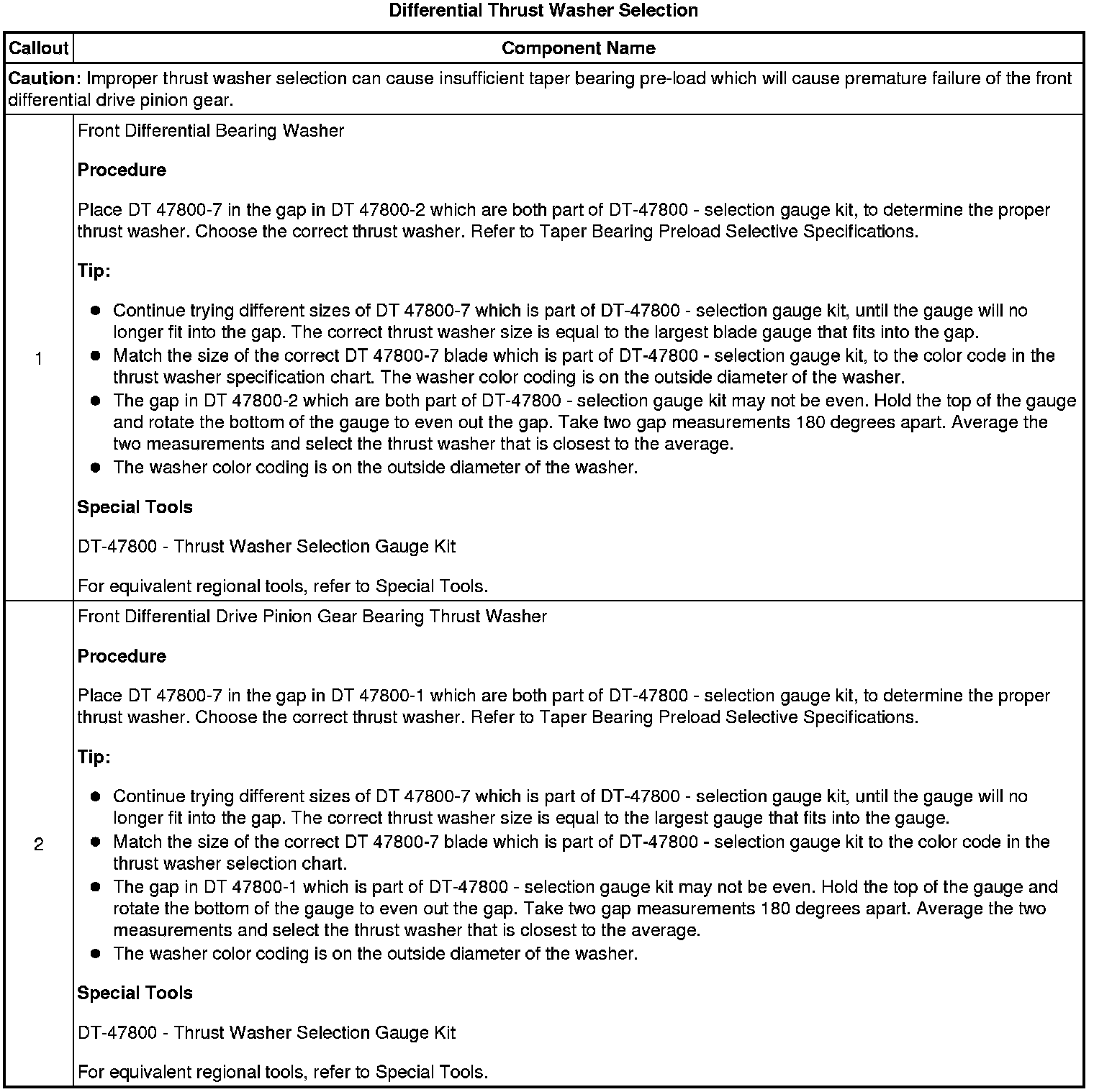 Front Differential Drive Pinion Gear Bearing Thrust Washer and Front Differential Bearing Washer Measurement