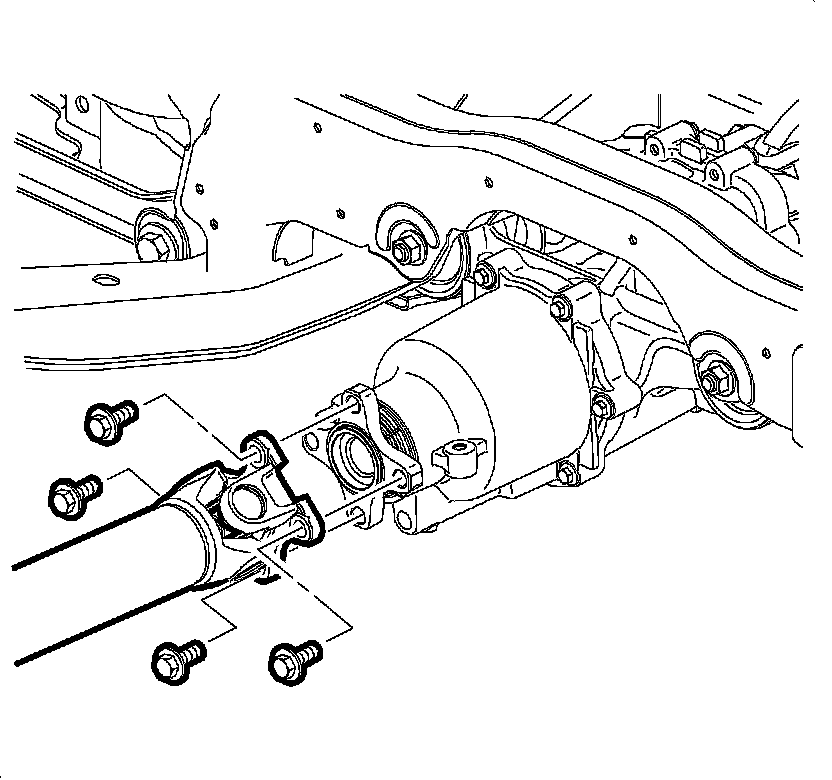 4. Remove the mounting bolts and the propeller shaft bolts from the rear differential drive flange.