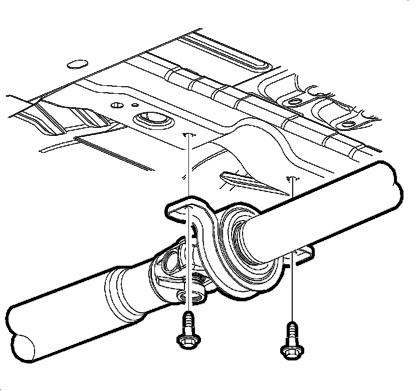 1. Clean the mounting bolts for the center bearing, front and rear propeller shaft drive flanges. Apply threadlocker to the bolt threads. Refer to Adhesives, Fluids, Lubricants, and Sealers [1][2]Drive/Propeller Shaft.