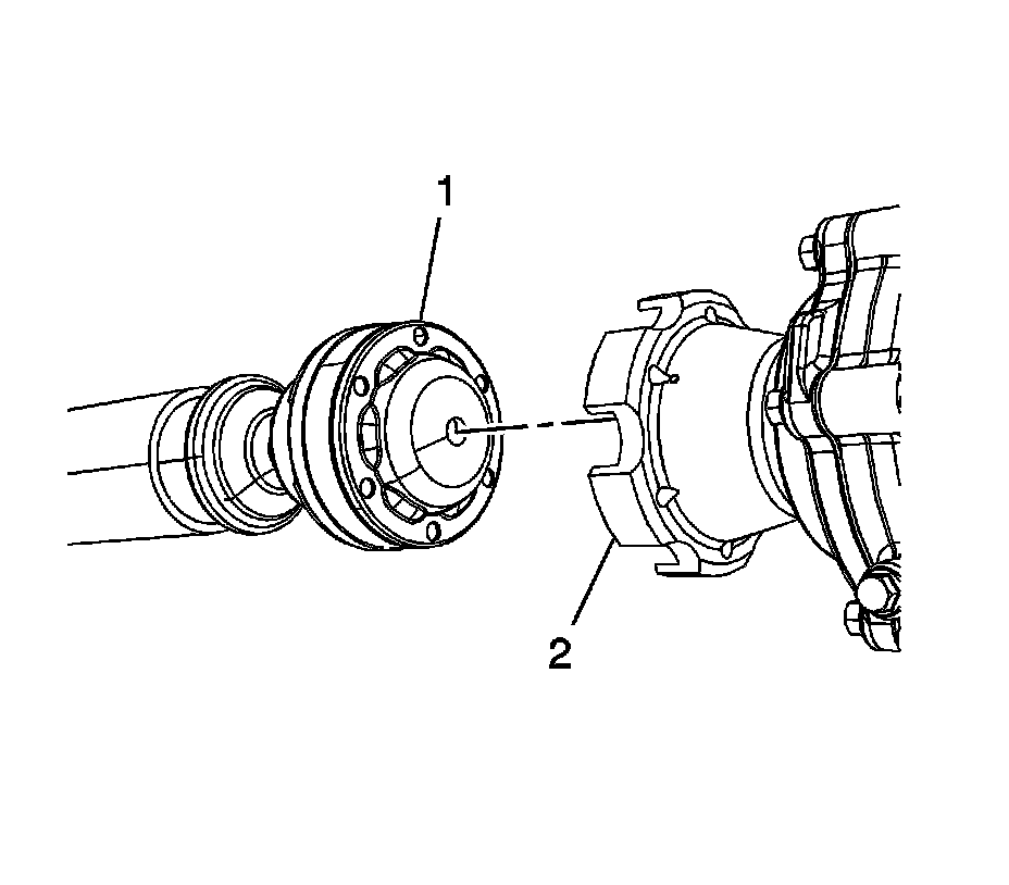 2. Mark the relationship of the front propeller shaft (2) to the transfer case drive flange (1).