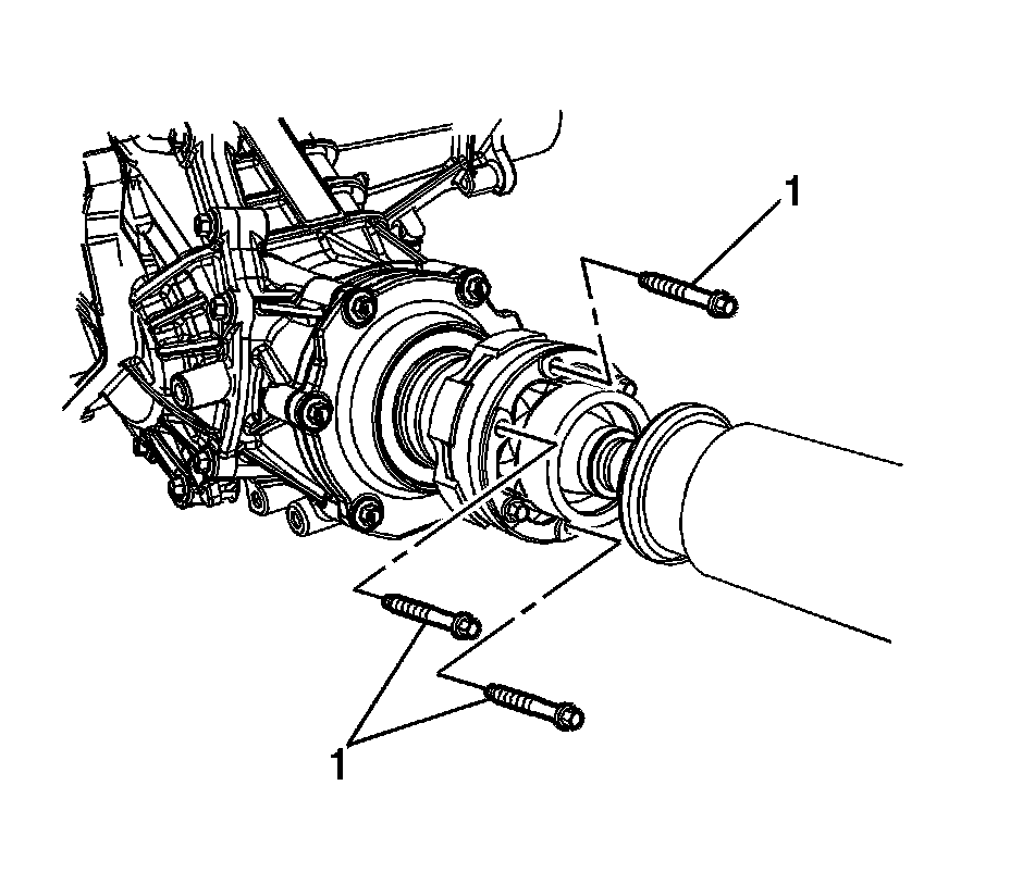 6. Install the remaining bolts and washers (1) from the propeller shaft to the transfer case flange and tighten to 34 Nm (25 lb ft).
