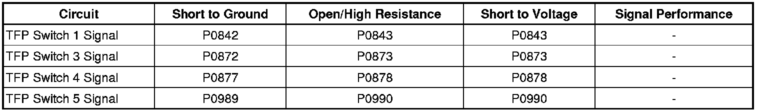 A TFP switch may malfunction due to normal debris in the transmission fluid causing a TFP Switch DTC to intermittently set. This type of failure should not be immediately noticeable to a customer, as the switch outputs are used for shift adaptives and do not cause transmission symptoms unless the switch malfunctions continuously for an extended period of time.