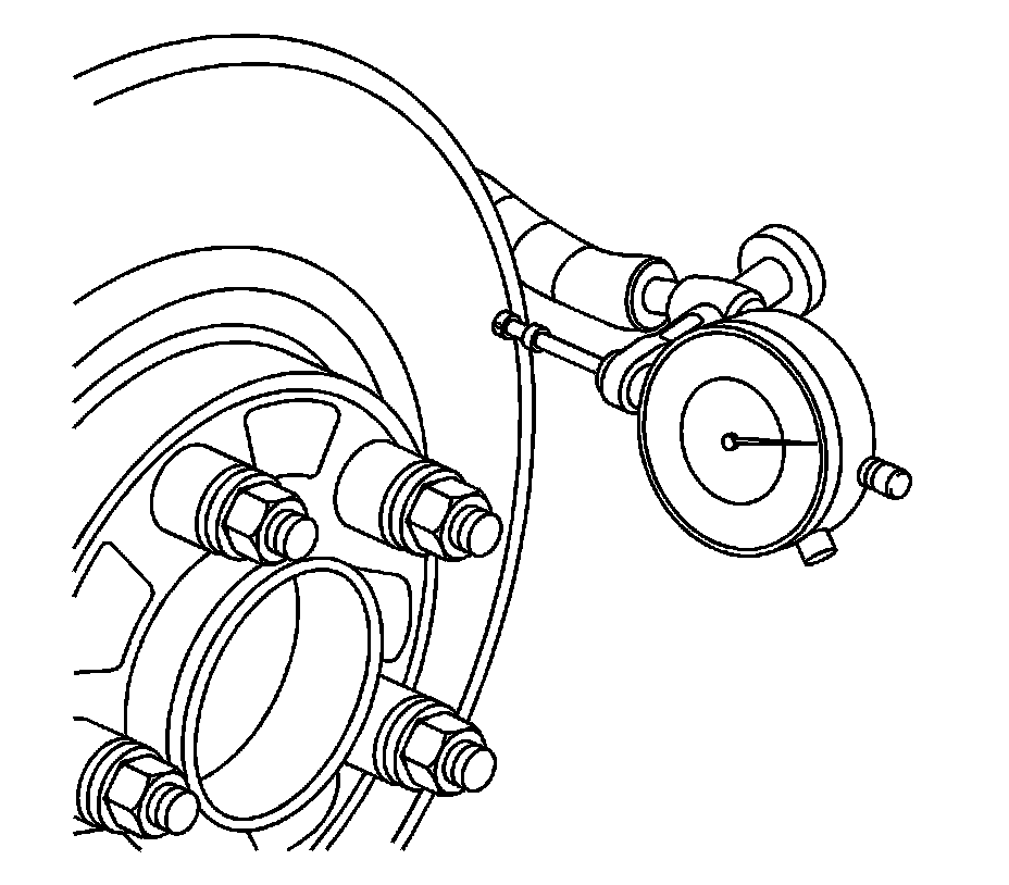 17. If the brake rotor assembled LRO measurement exceeds the specification, bring the LRO to within specifications. Refer to Brake Rotor Assembled Lateral Runout Correction Brake Rotor Assembled Lateral Runout Correction.