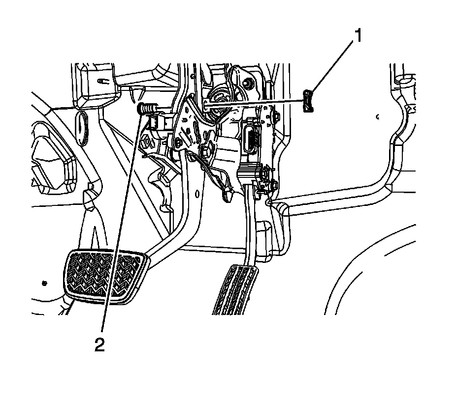 5. Connect the brake pedal pushrod to the brake pedal and install the clevis pin (2).