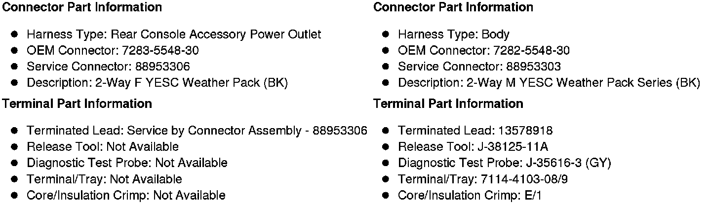 X380 Rear Console Accessory Power Outlet Harness to Body Harness (DK1)