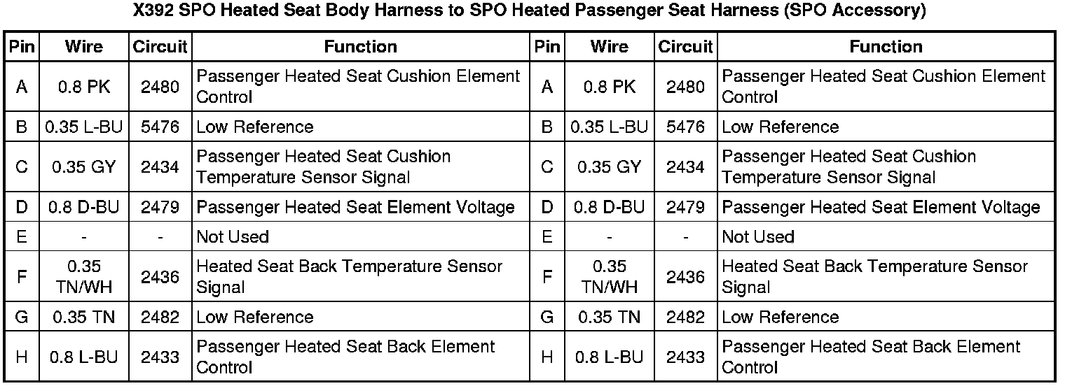 X392 SPO Heated Seat Body Harness to SPO Heated Passenger Seat Harness (SPO Accessory)