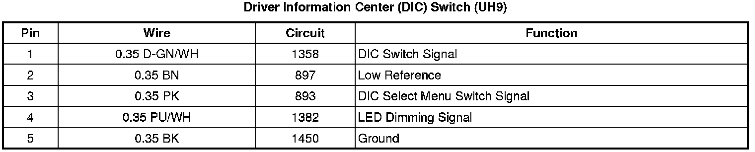 Driver Information Center (DIC) Switch (UH9)