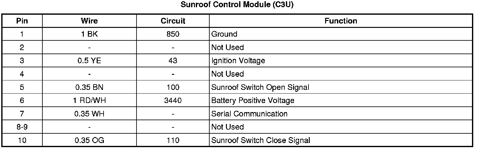 Sunroof Control Module (C3U)