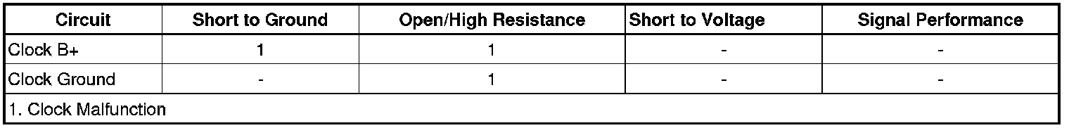 The instrument panel is equipped with an analog clock. The analog clock utilizes the clock B+ circuit and the clock ground circuit to operate.
