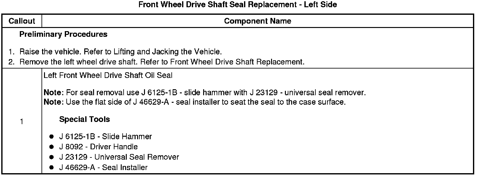 Front Wheel Drive Shaft Seal Replacement - Left Side