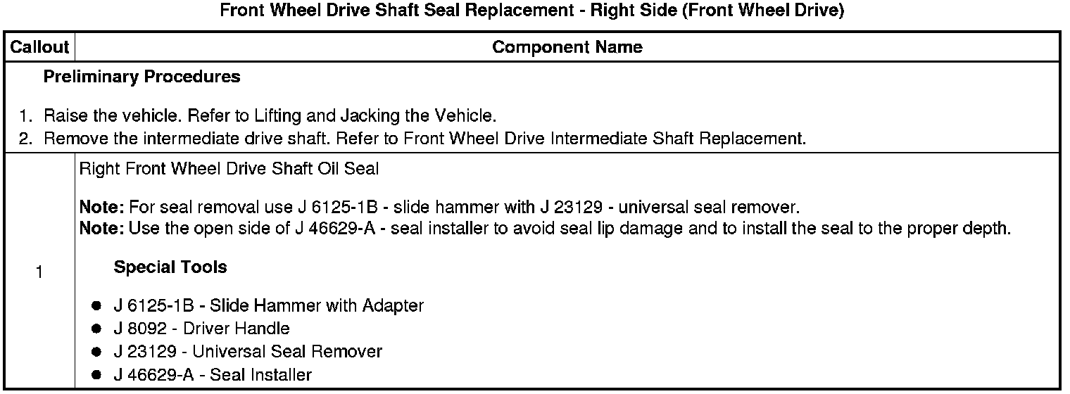 Front Wheel Drive Shaft Seal Replacement - Right Side (Front Wheel Drive)