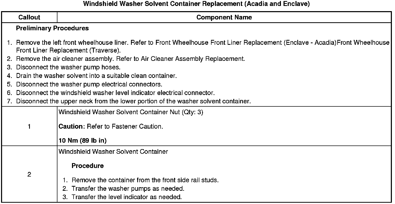 Windshield Washer Solvent Container Replacement (Acadia and Enclave)