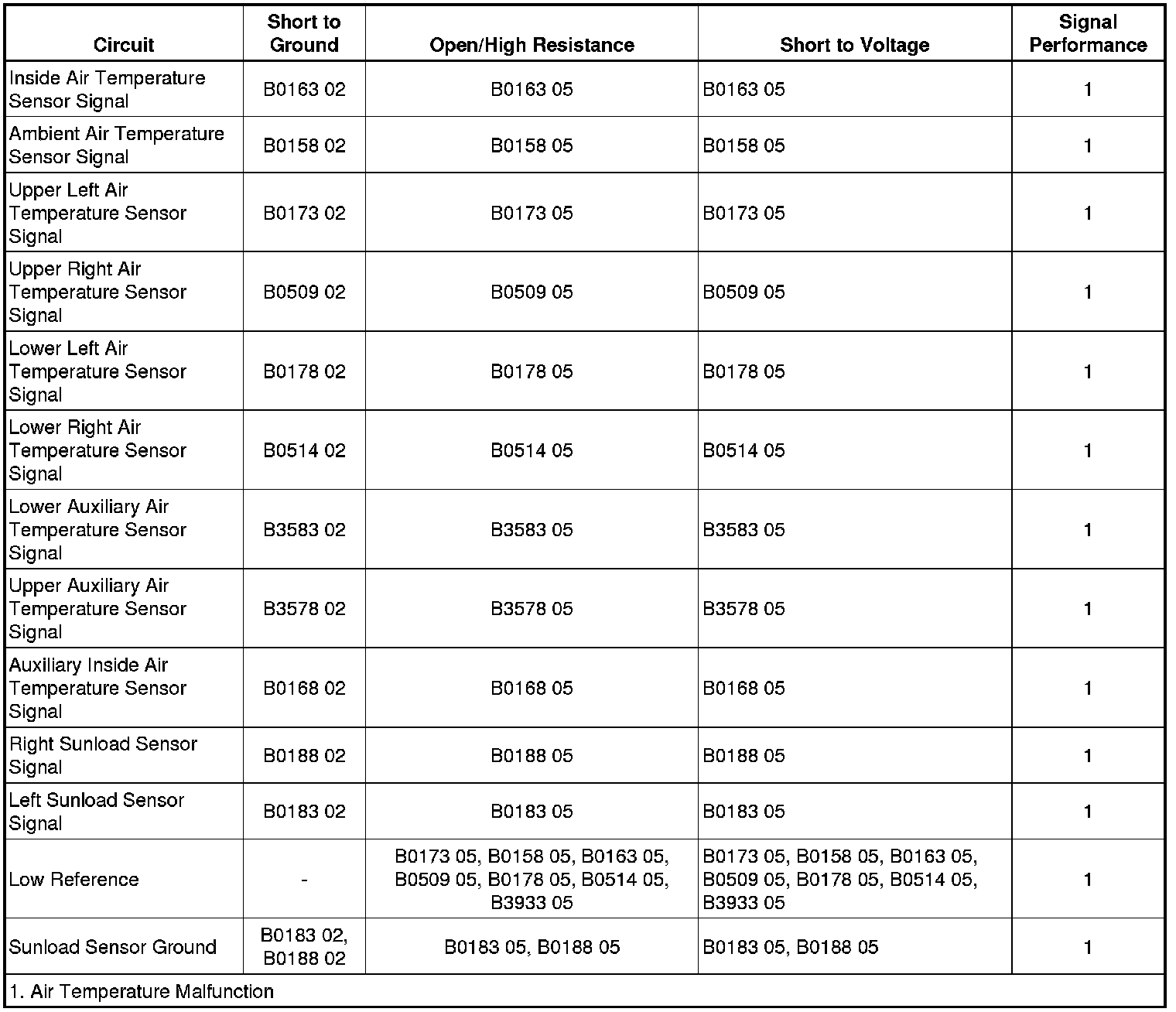 Passenger Compartment Temp Sensor 1 Circuit Short to Ground