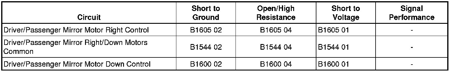 Mirror Motor Vertical Circuit Short to Battery