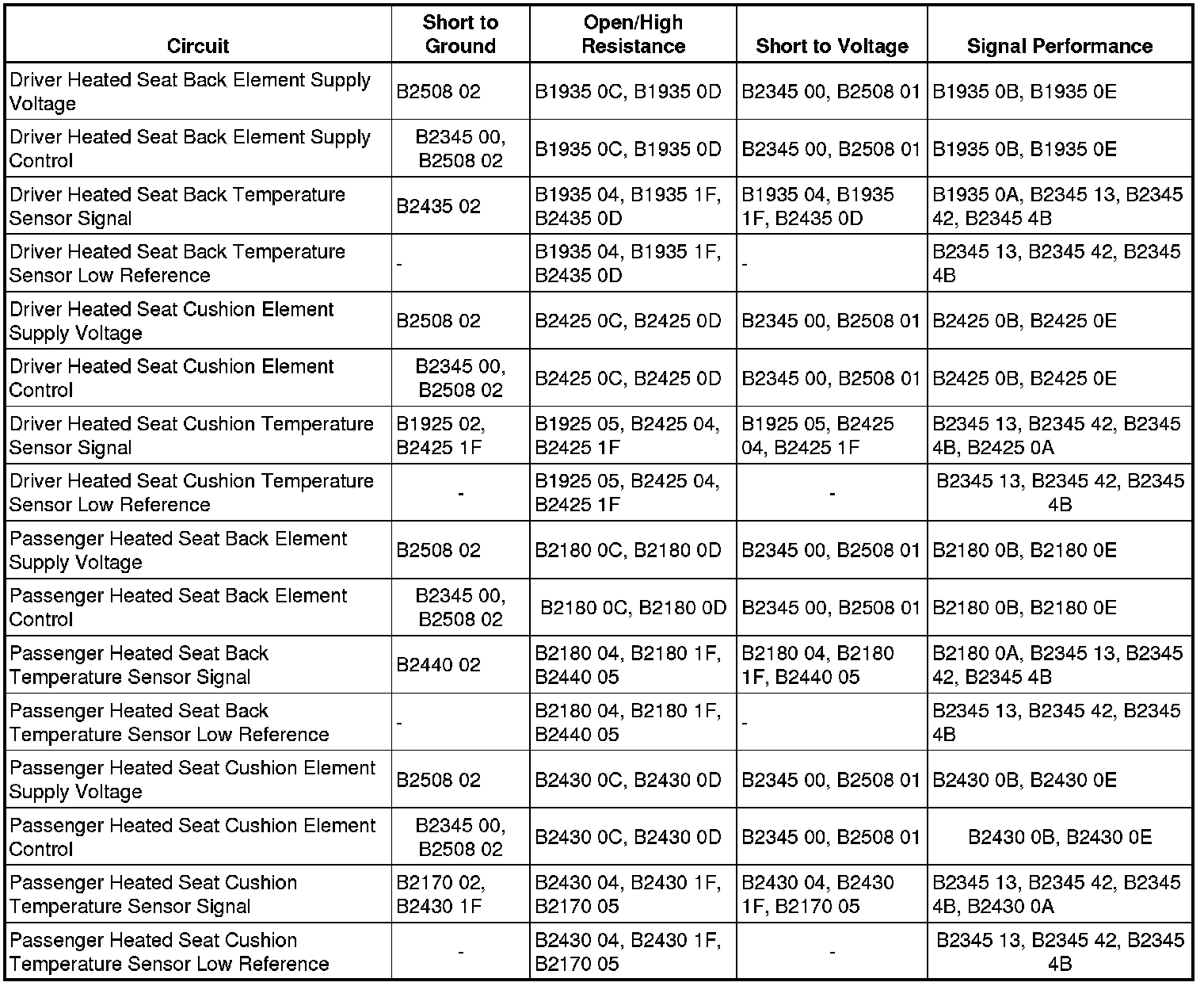 Right Seat Back Heater Sensor Circuit Short to Battery or Open