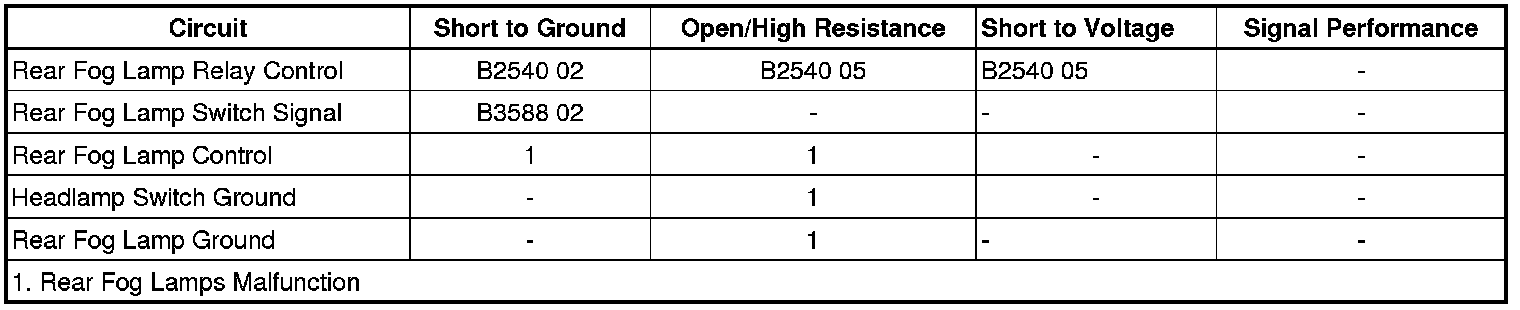 Rear Fog Lamp Control Circuit Short to Battery or Open