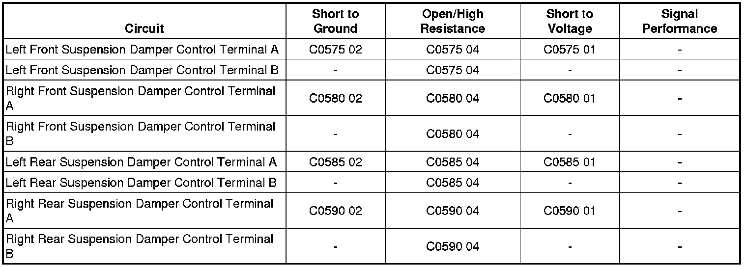 The electronic suspension control module (ESCM) commands variable levels of pulse width modulated current to each damper in response to rough road, or abrupt steering maneuver driving conditions. The ESC module continuously compares each dampers command state with the state of their feedback circuits to ensure they agree.