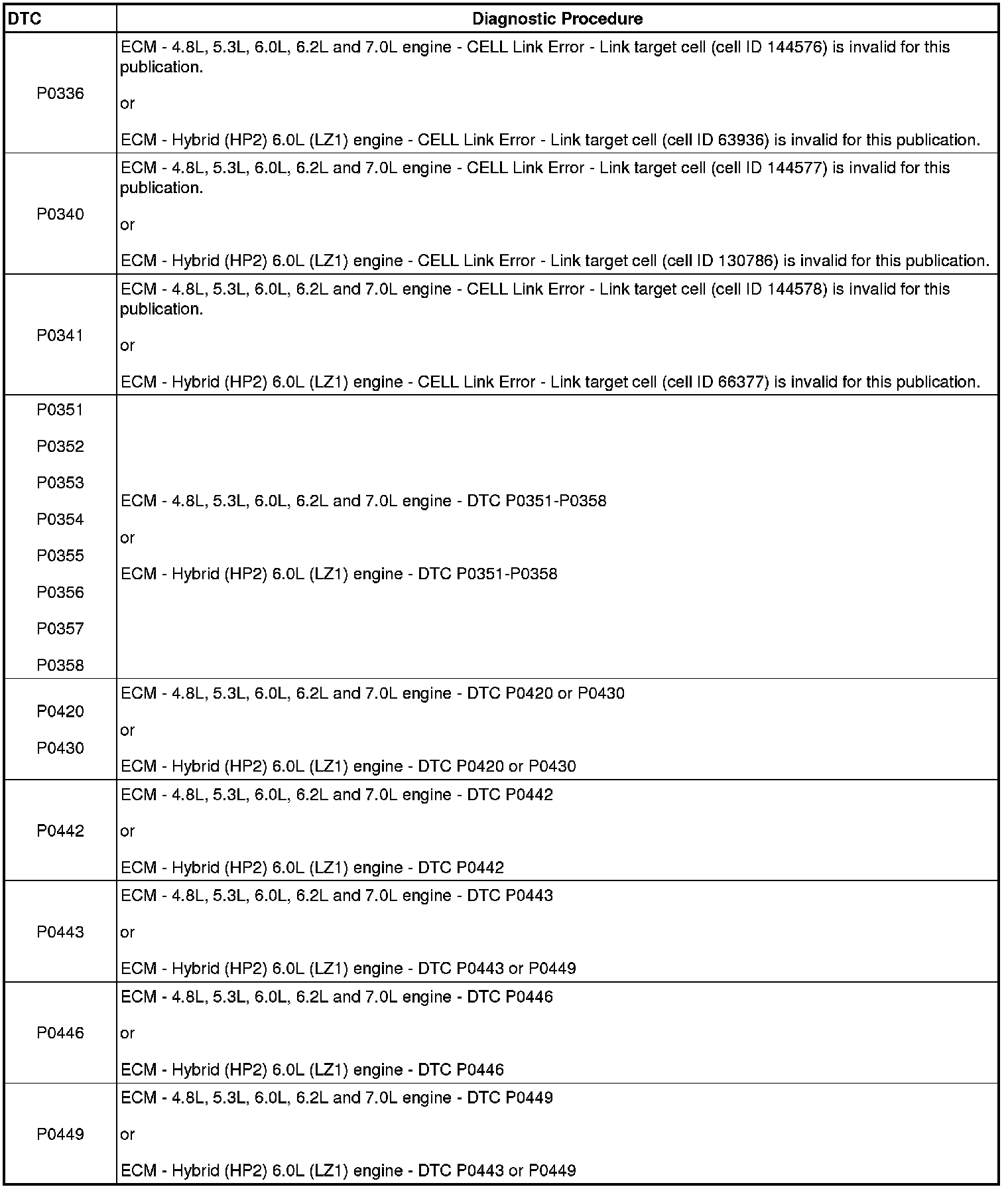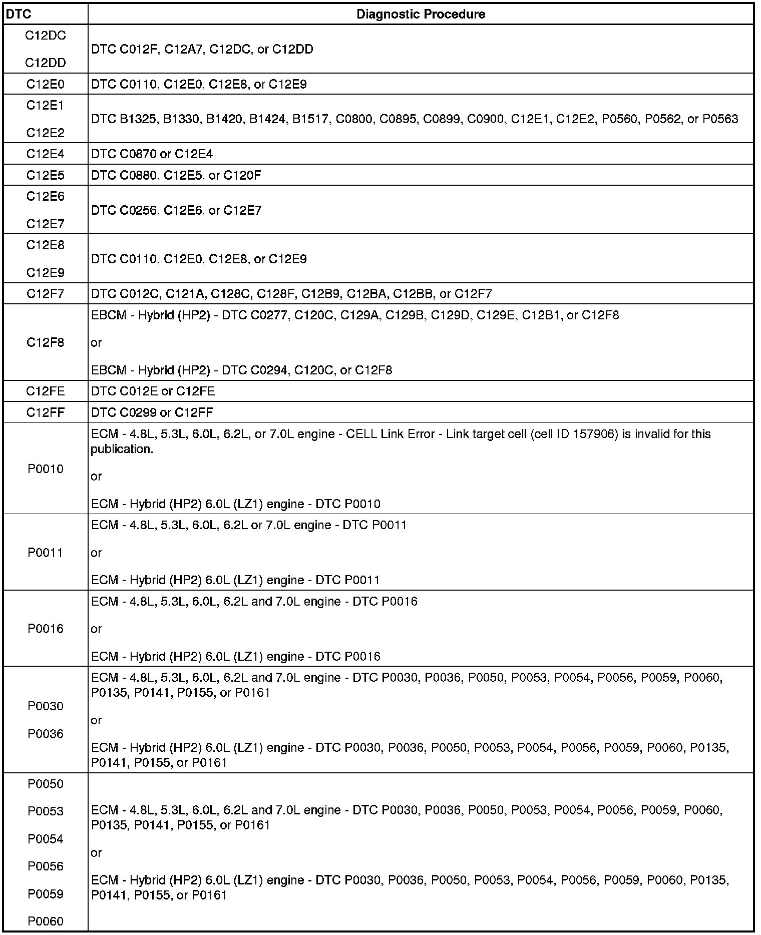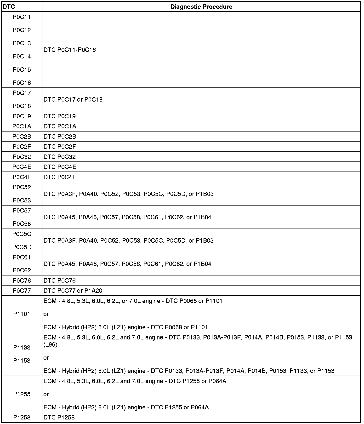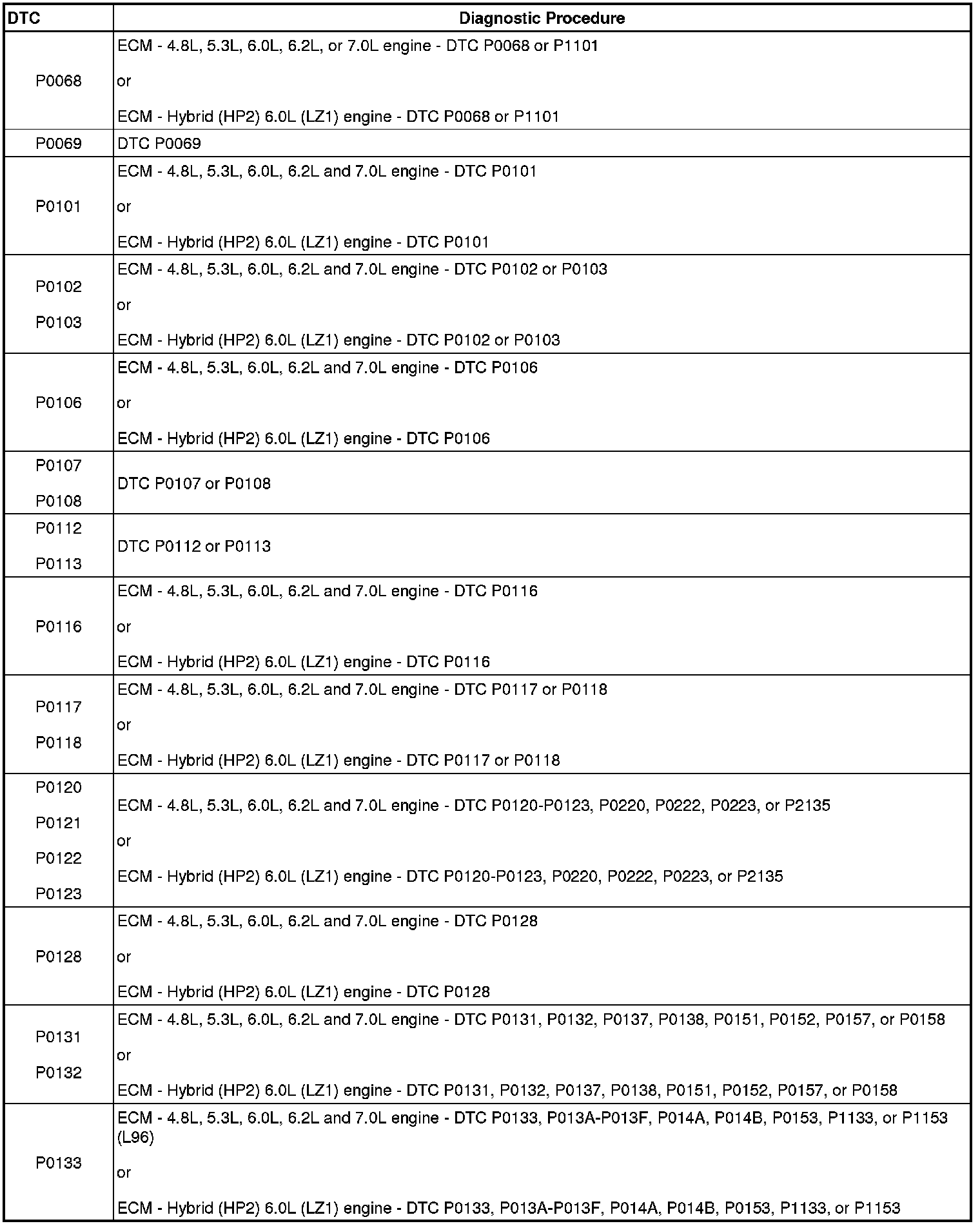 A L L Diagnostic Trouble Codes ( DTC )