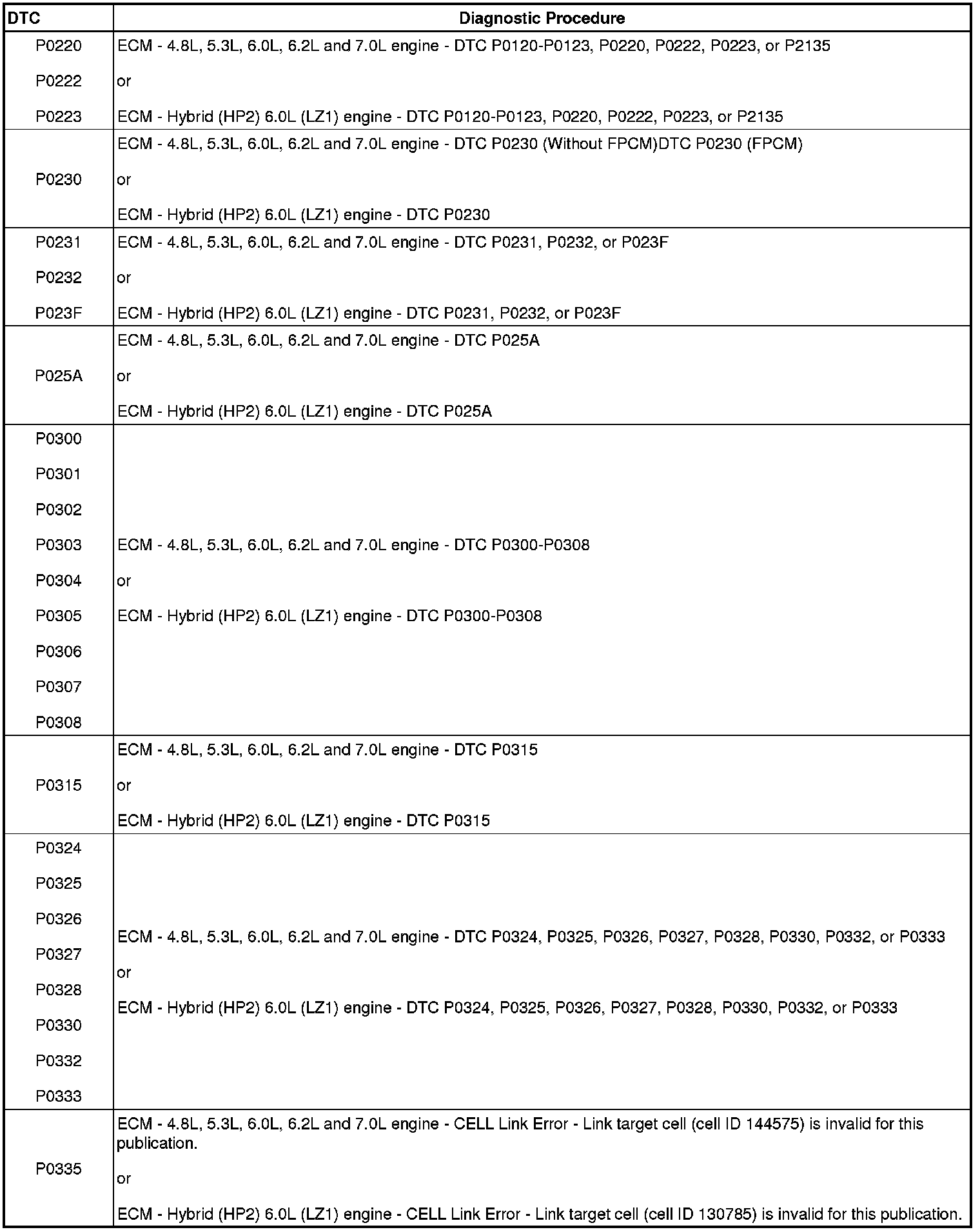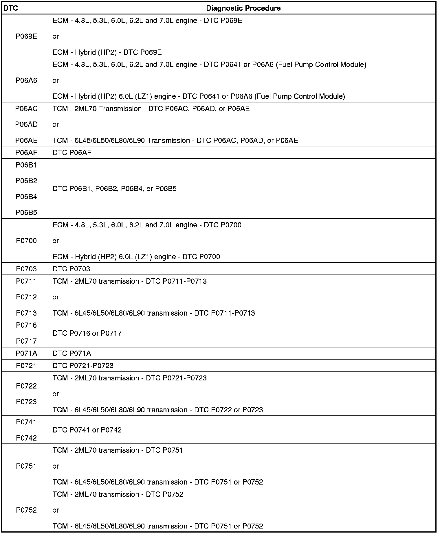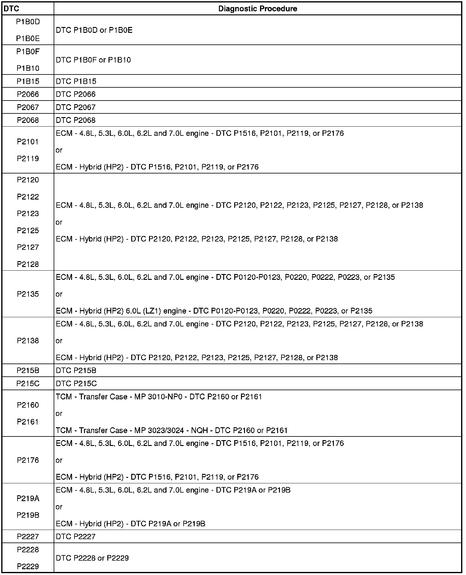 A L L Diagnostic Trouble Codes ( DTC )