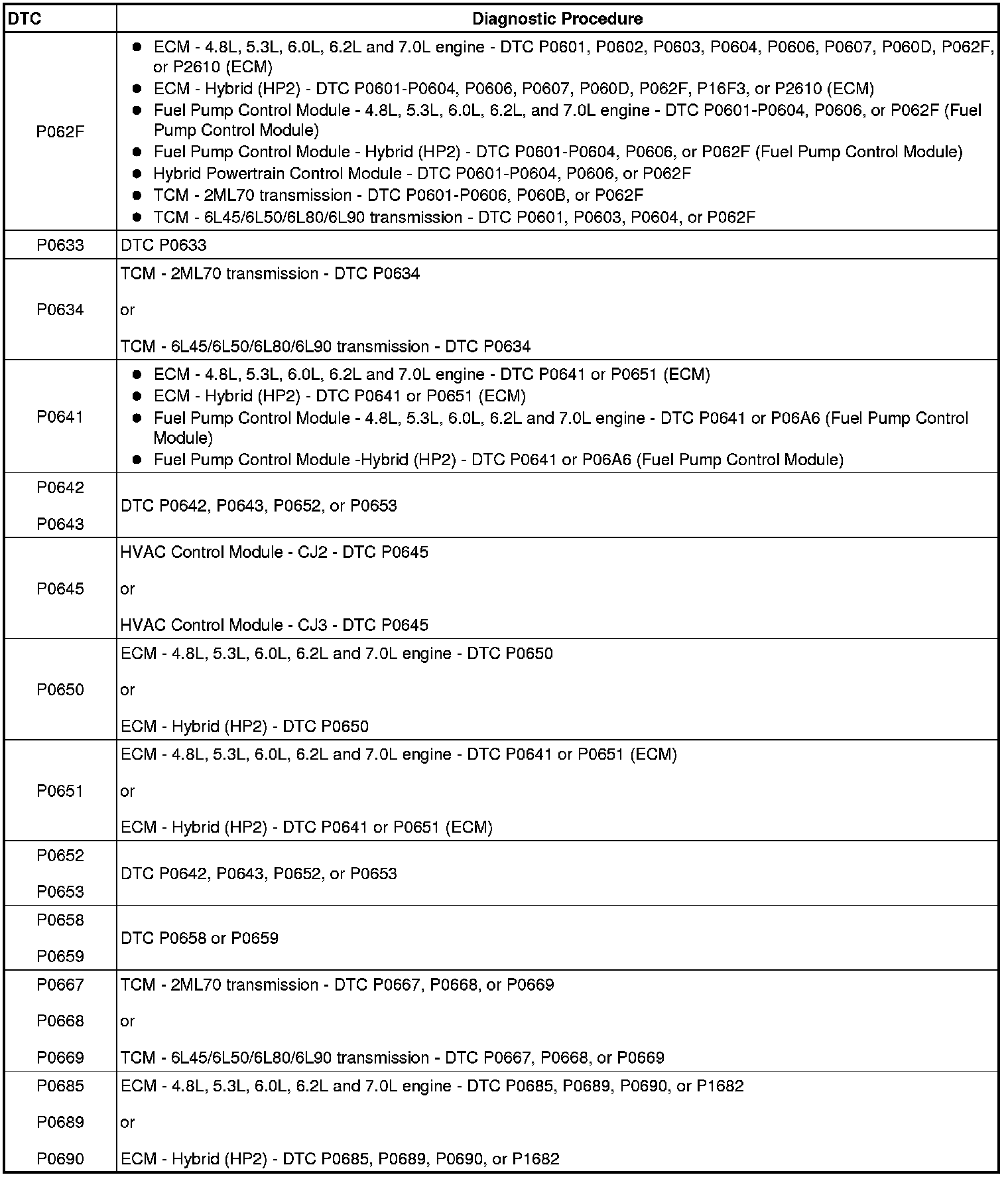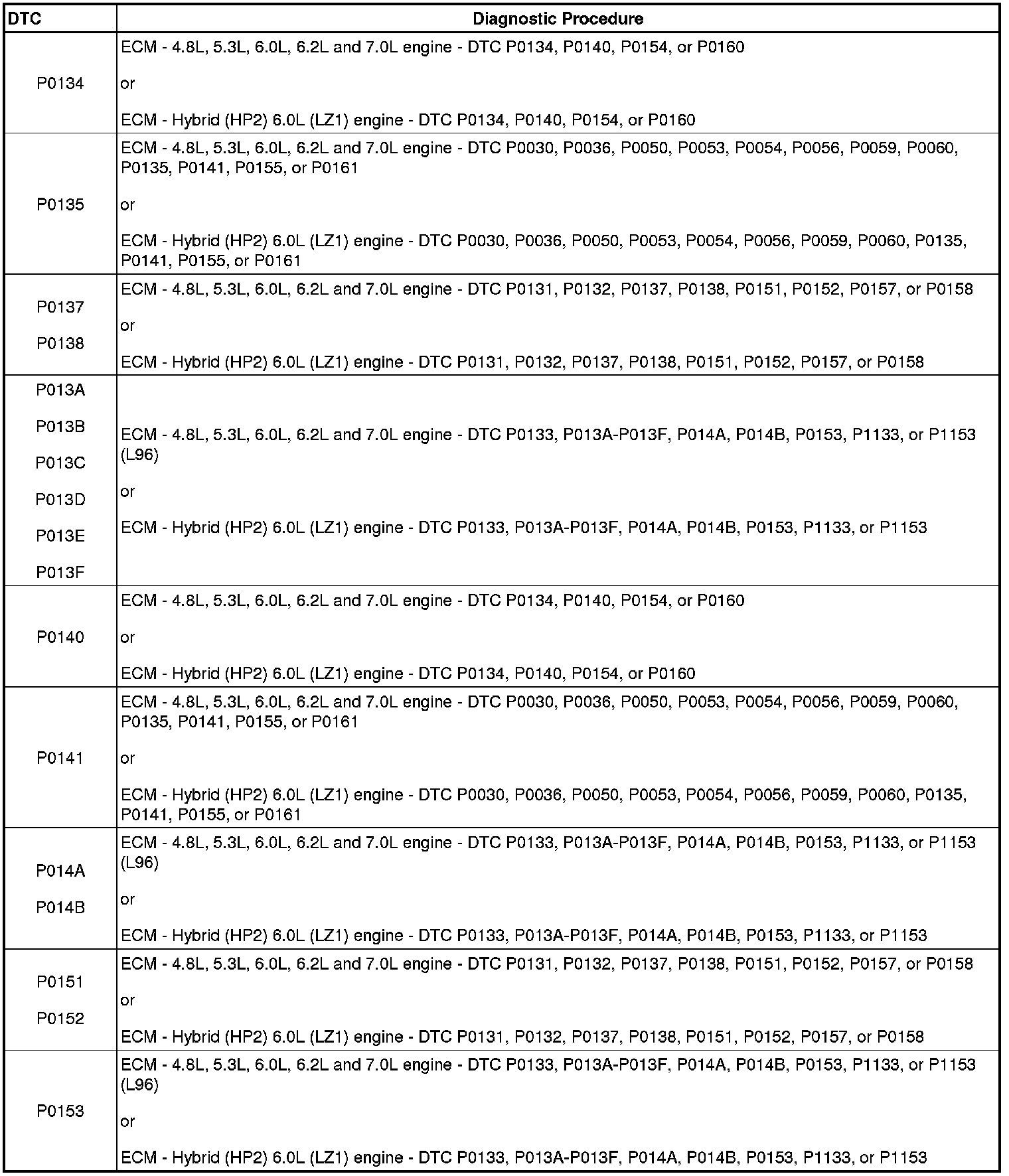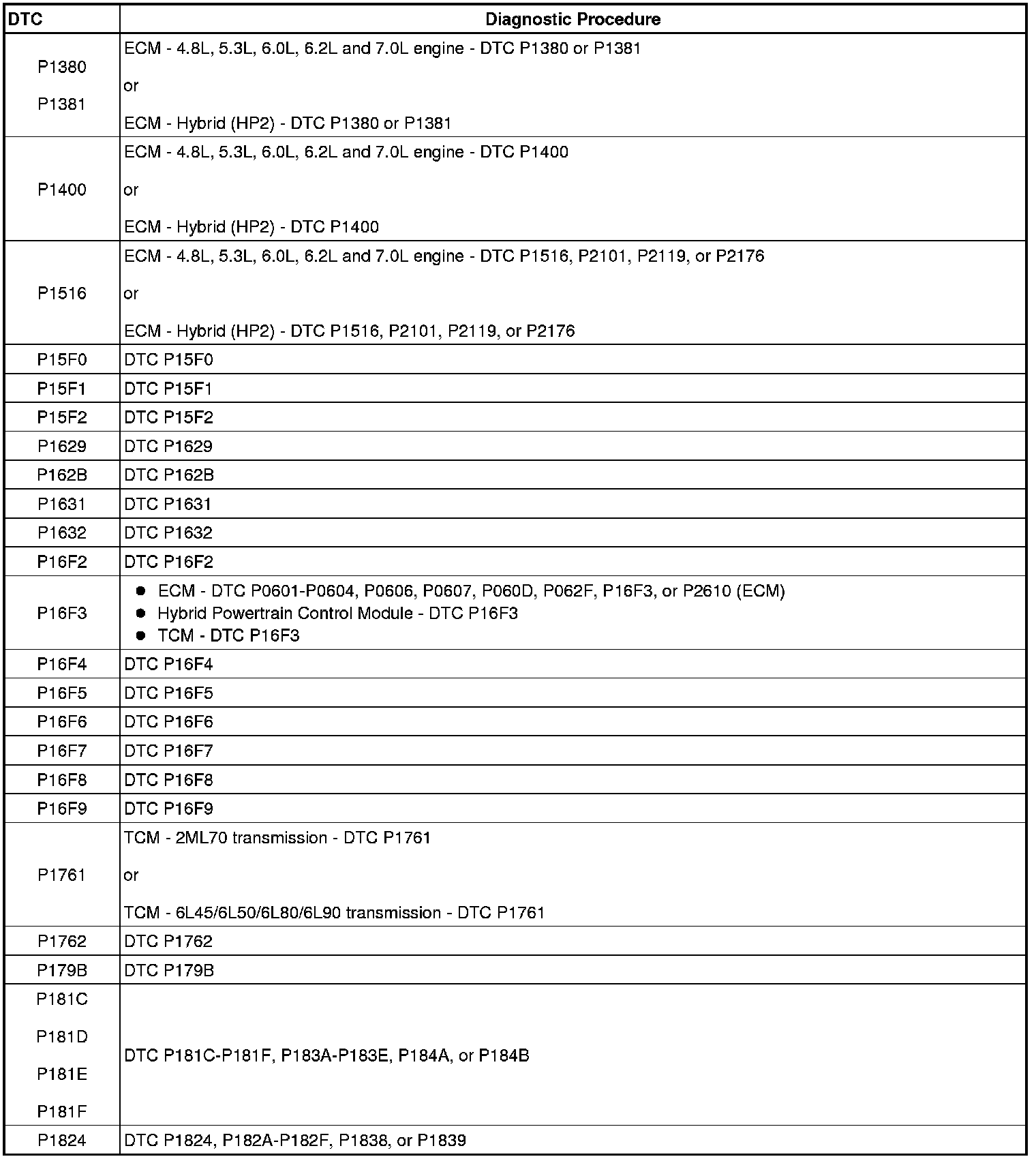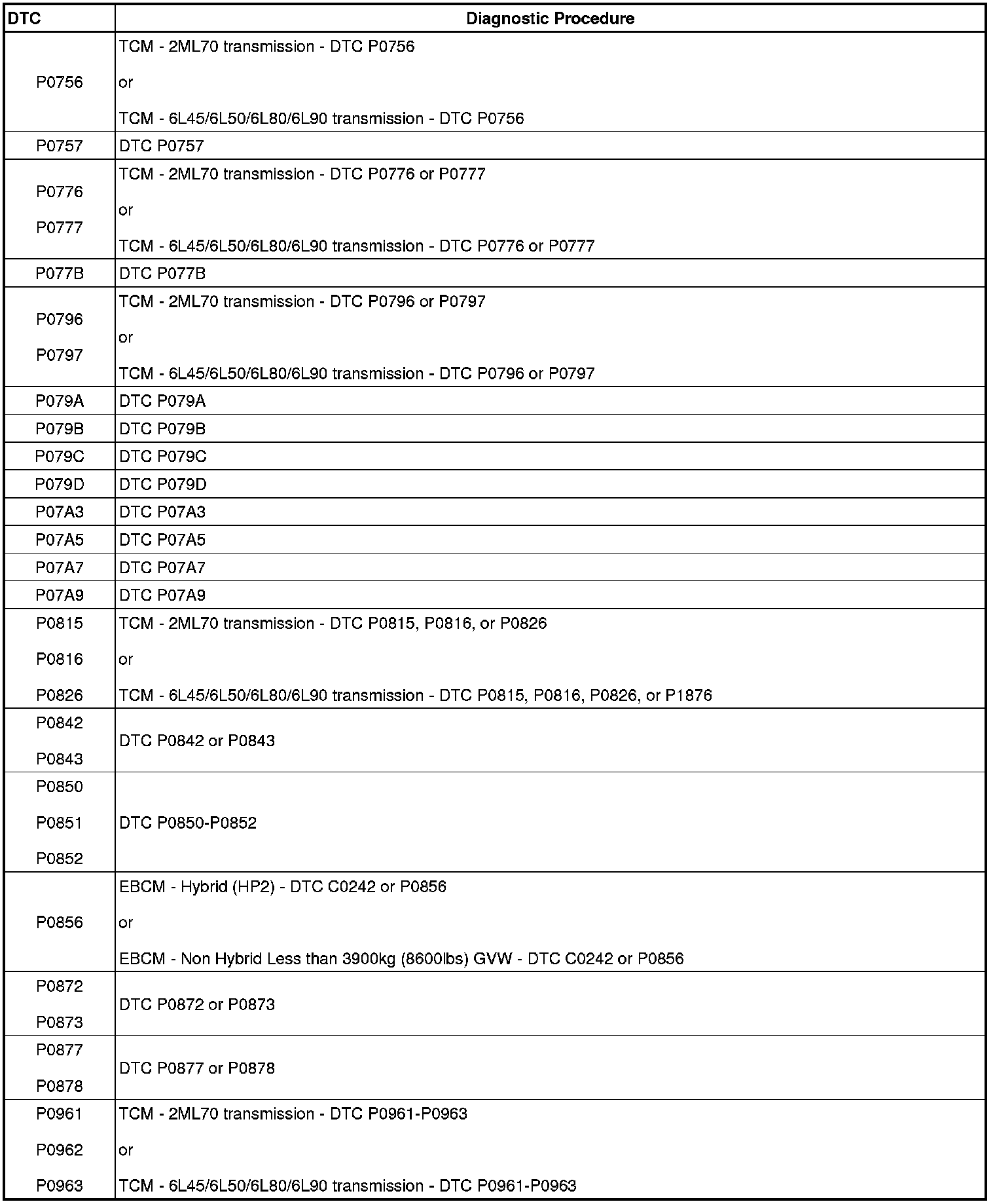 A L L Diagnostic Trouble Codes ( DTC )