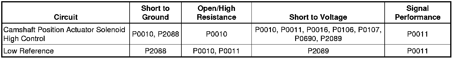 - Camshaft Position (CMP) Actuator Solenoid Control Circuit High Voltage