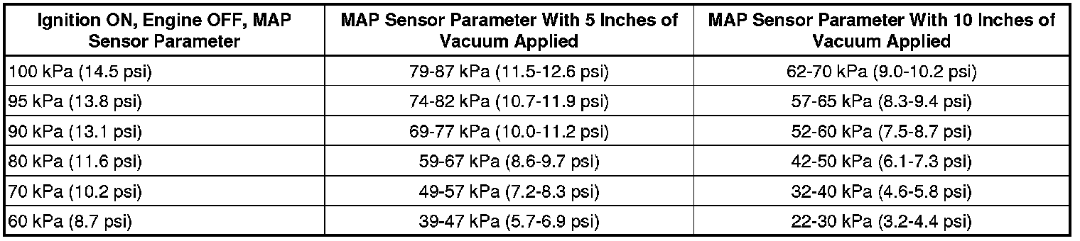 3. Use the observed MAP Sensor Scan Tool parameter that is closest to a value that is indicated in the first column.