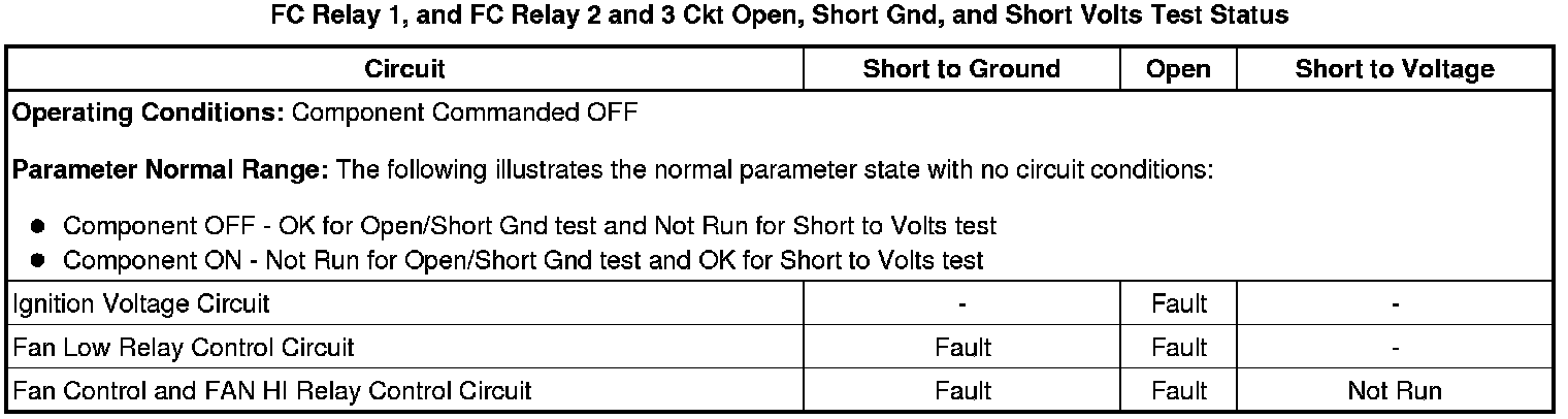 * FC Relay 1 Ckt Open, Short Gnd, and Short Volts Test Status