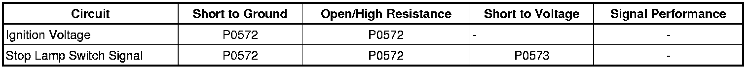 DTC P0572 or P0573