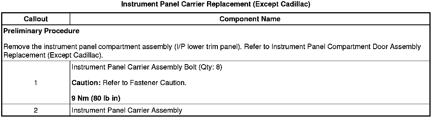 Instrument Panel Carrier Replacement (Except Cadillac)