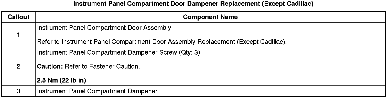 Instrument Panel Compartment Door Dampener Replacement (Except Cadillac)