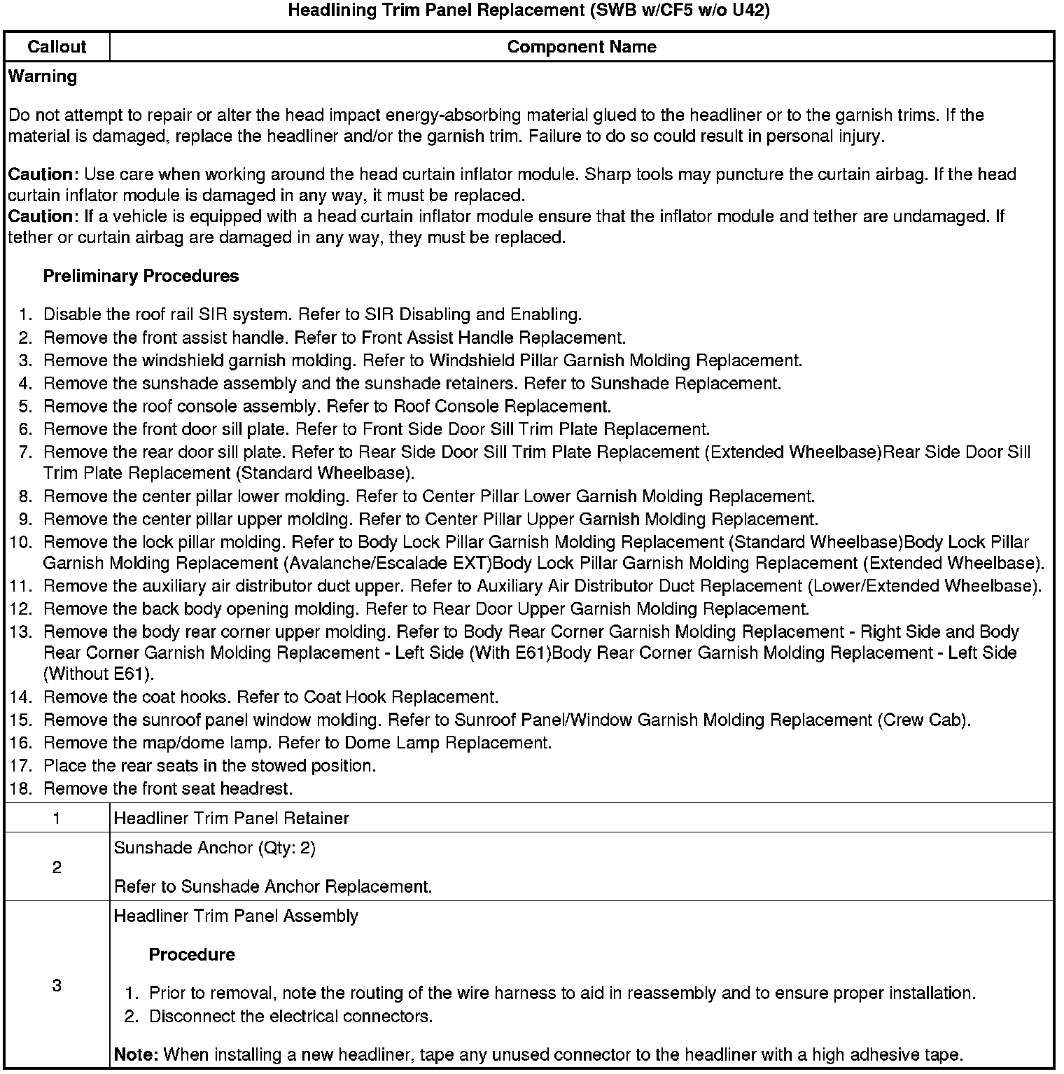 Headlining Trim Panel Replacement (SWB w/CF5 w/o U42)