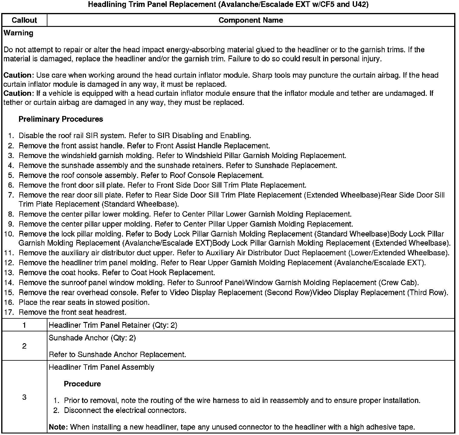 Headlining Trim Panel Replacement (w/CF5 and U42)